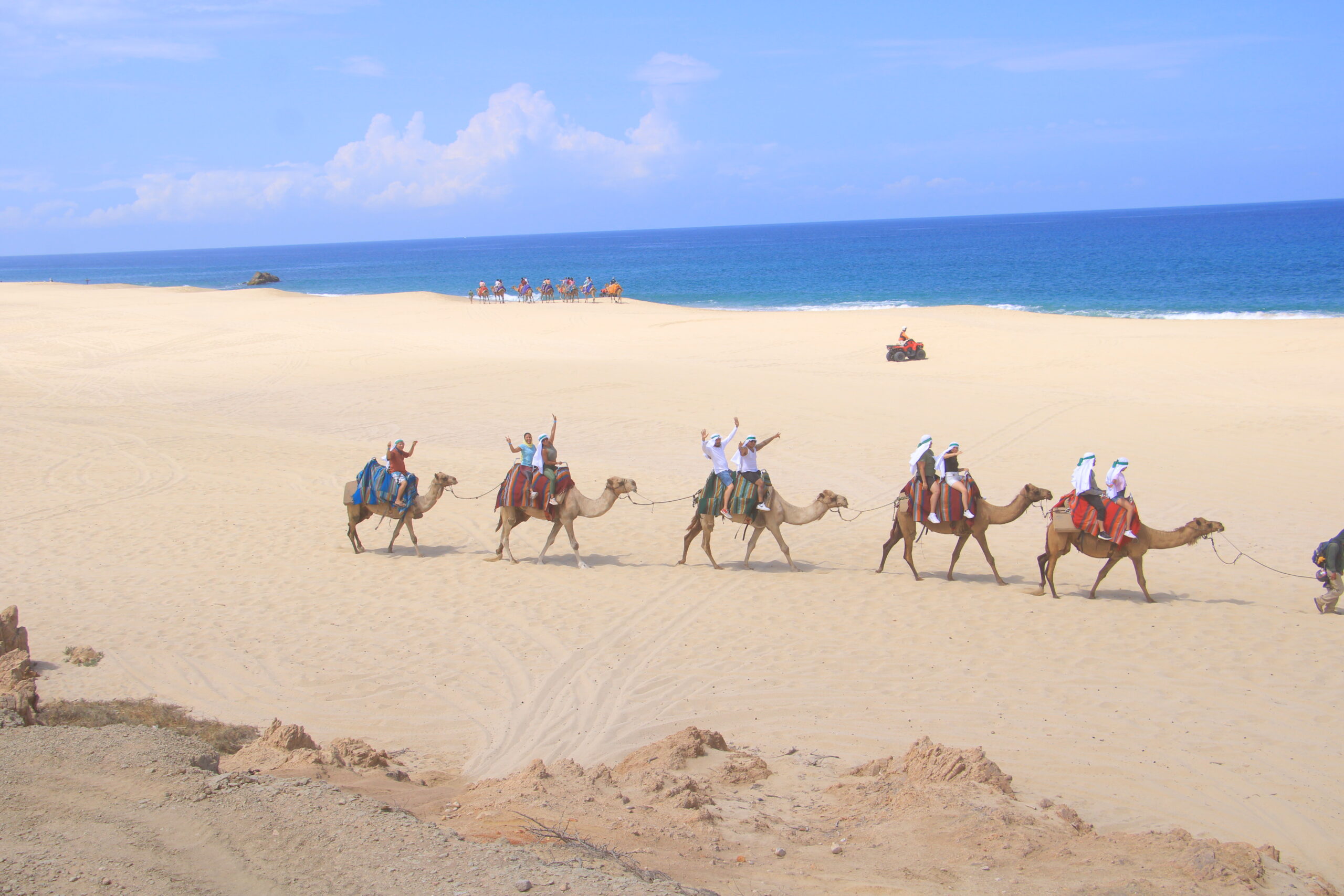 ¡Descubre la actividad más única e inusual que puedes hacer en Cabo! ¡Un paseo en camello por la playa, por supuesto! No pierdas la fantástica oportunidad de vivir una experiencia increíble que recordarás para toda la vida. Ven y disfruta de un espectacular paseo en camello a lo largo de las cristalinas aguas y las majestuosas olas del Océano Pacífico.